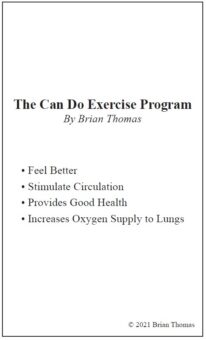 This exercise program is called the Can Do program because almost everyone can do the following exercises every day. An exercise program should be designed so that no matter how tired you are or how little time you have, you Can Do these exercises. Everyone should exercise every day. If you have an exercise program that is too long or too strenuous, at some point in time, you will miss a day or two. After that, it’s a downhill slide, and eventually you will probably stop or only do it once in a while.